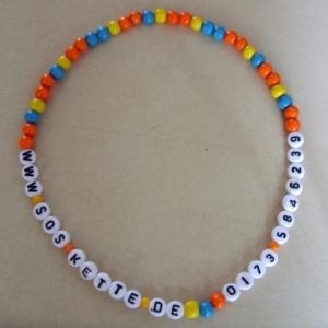 Das Basismodell i.H.v. 10,00 € mit Gummiband beinhaltet einen Vornamen und die Buchstabenperlen sind in schwarz- weiss gehalten.